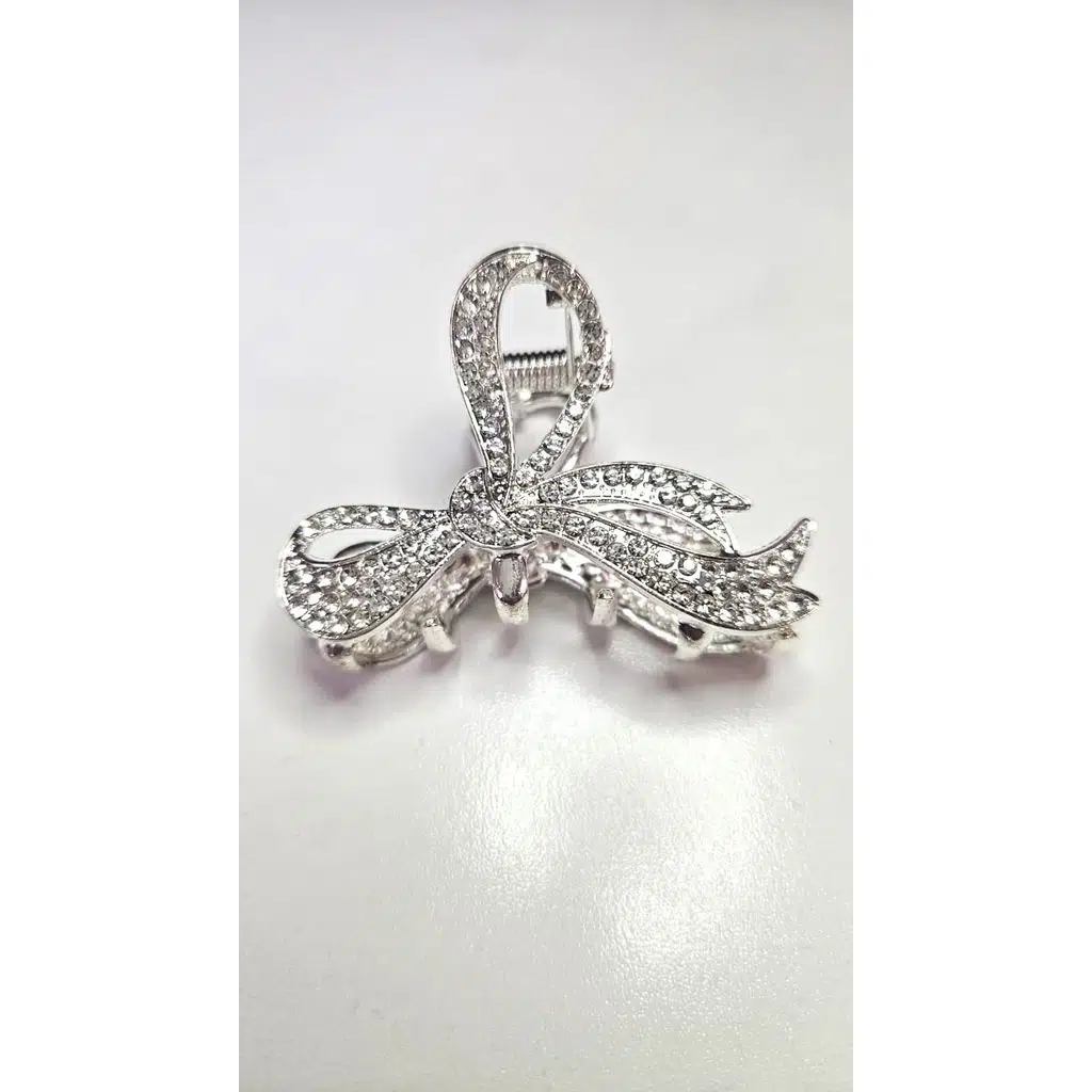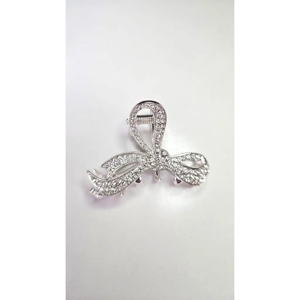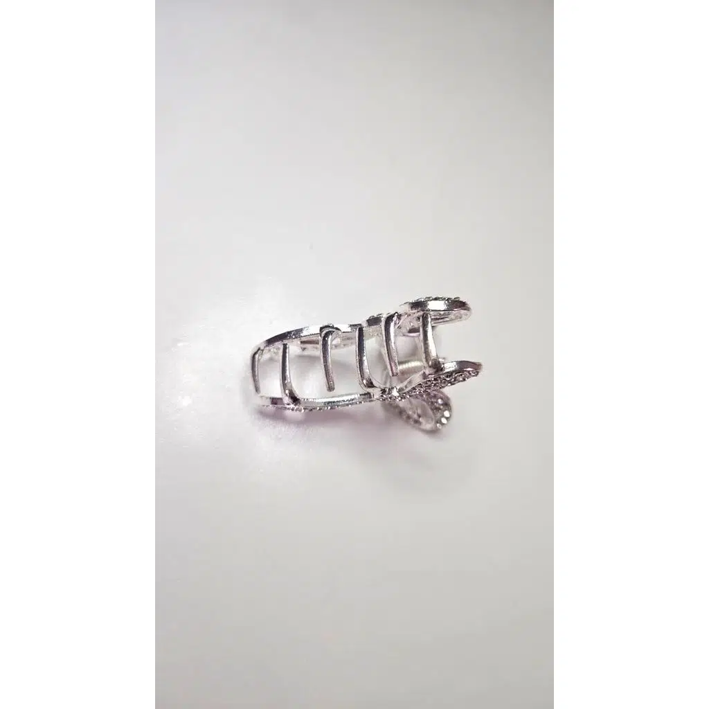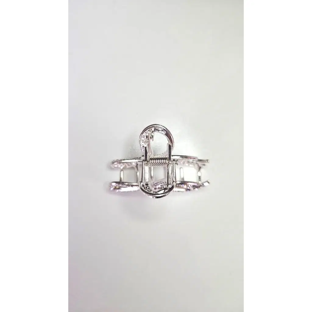 Taşlı Gümüş Renk Çift Taraflı Metal Mandal Saç Tokası 4 cm Küçük Boy