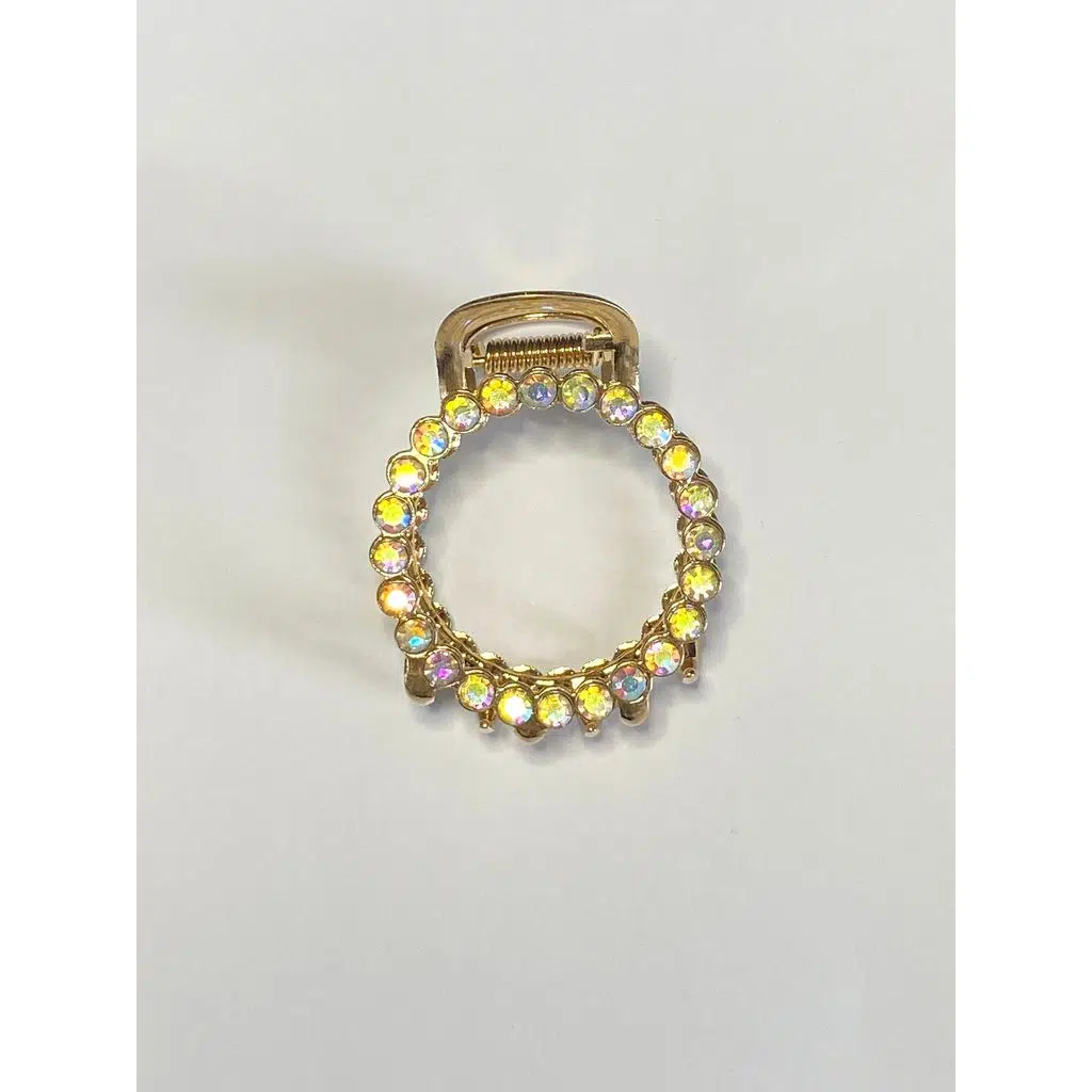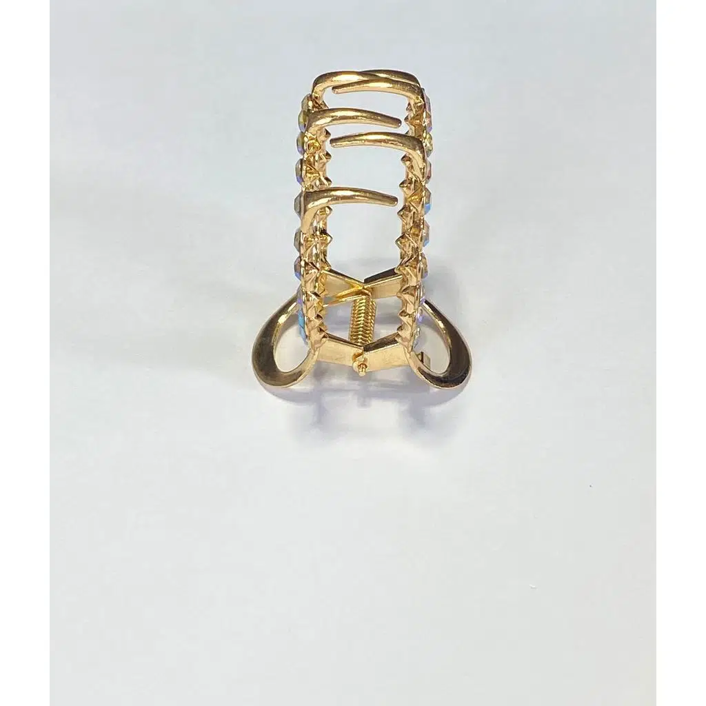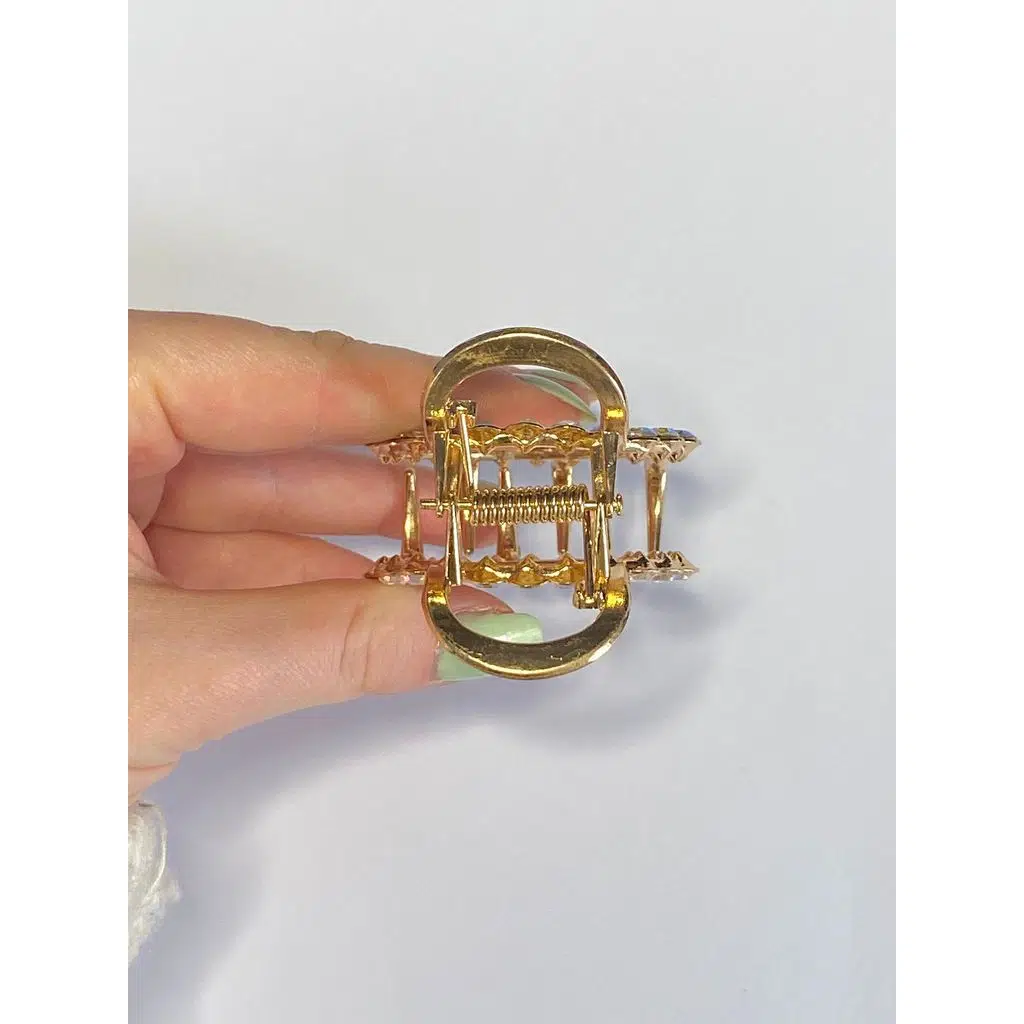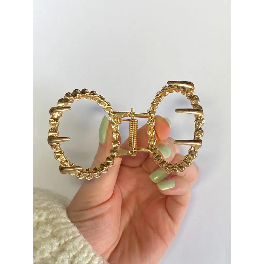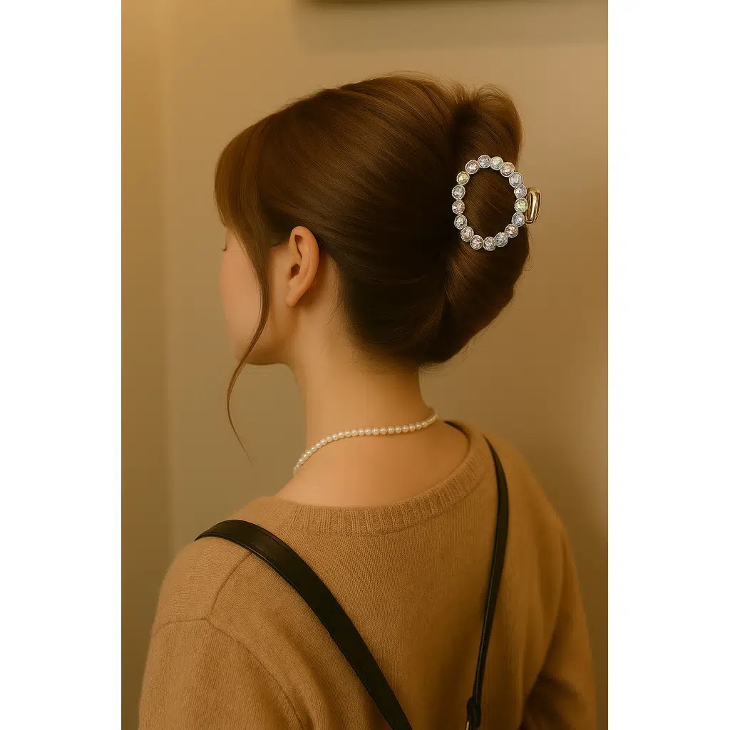 6 cm Taşlı Halka Gold Saç Tokası, zarif yuvarlak formu ve parlayan taş detaylarıyla klasik şıklığı modern bir tarzla buluşturur. Parlak taşları ışığı her açıdan yansıtarak saçlarda lüks ve dikkat çekici bir duruş oluşturur.