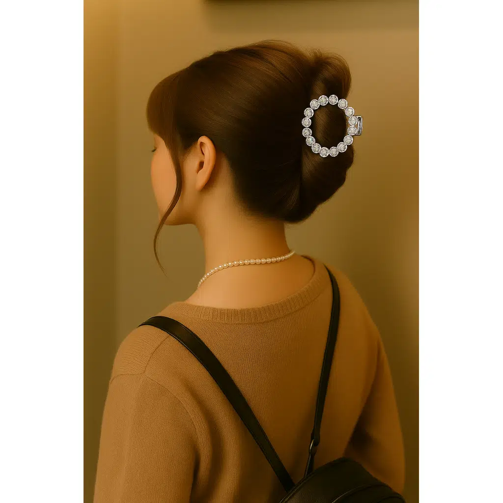 Güçlü yaylı mekanizması sayesinde saçları sağlam bir şekilde kavrar; hem günlük hem özel gün kombinlerinde zarif bir tamamlayıcı olur. Topuz, yarım toplama veya örgü stillerinde kolayca kullanılabilir.