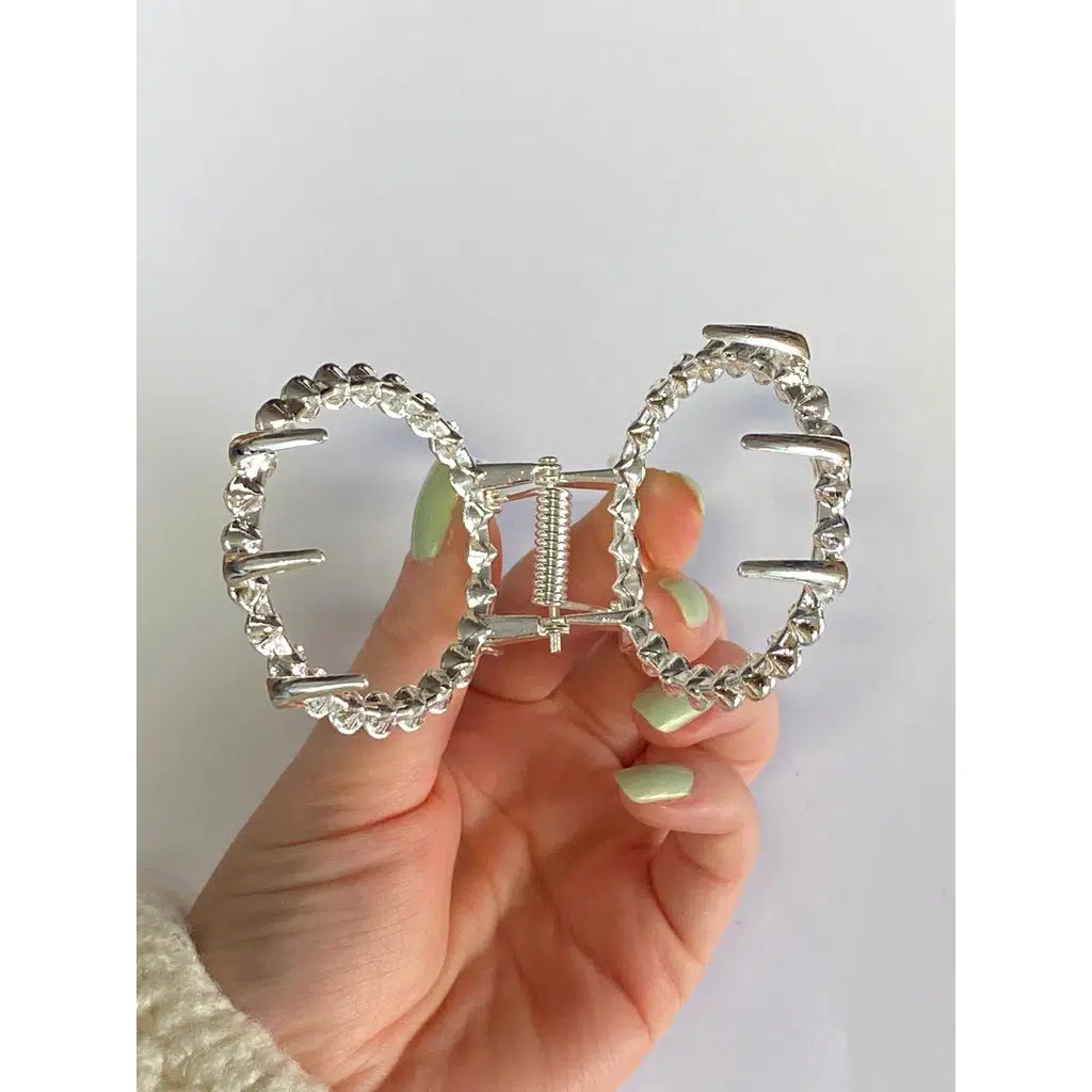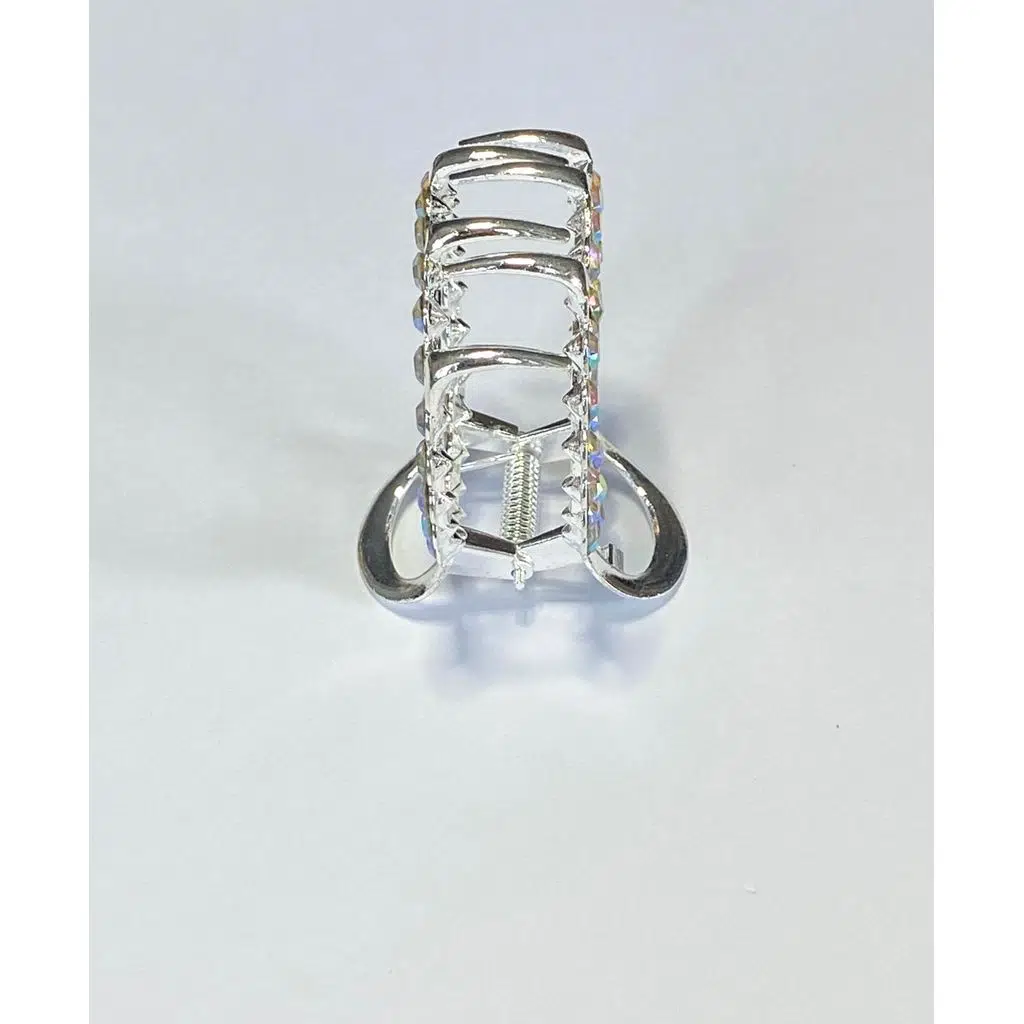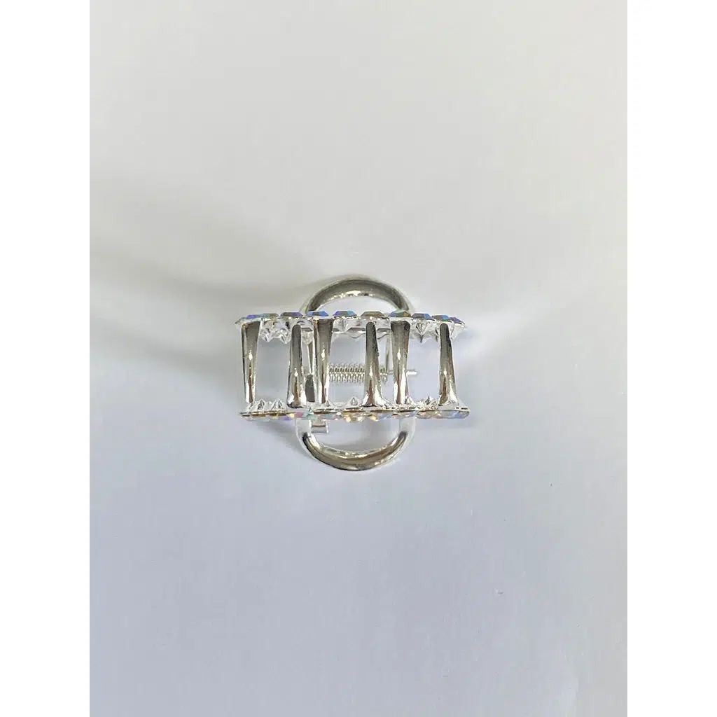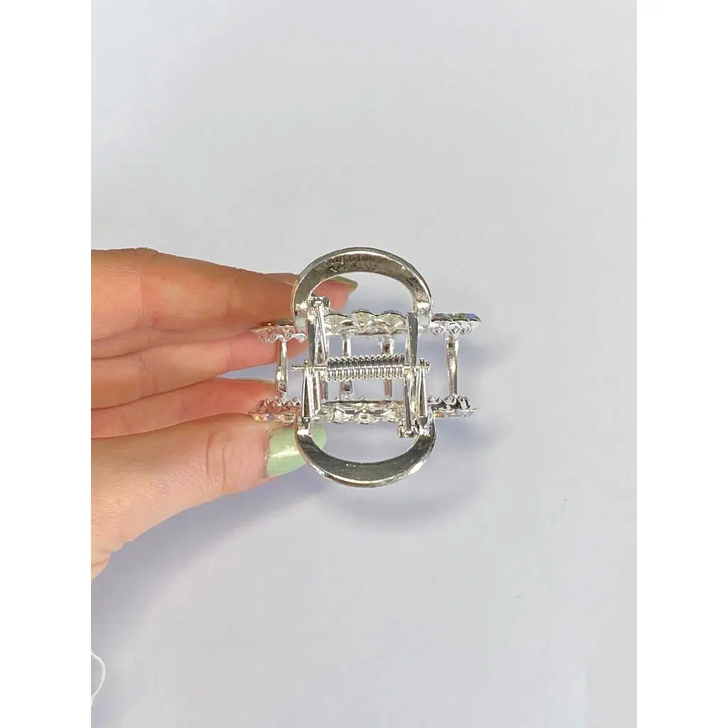 6 cm Taşlı Halka Gümüş Saç Tokası, zarif yuvarlak formu ve parlayan taş detaylarıyla klasik şıklığı modern bir tarzla buluşturur. Parlak taşları ışığı her açıdan yansıtarak saçlarda lüks ve dikkat çekici bir duruş oluşturur.