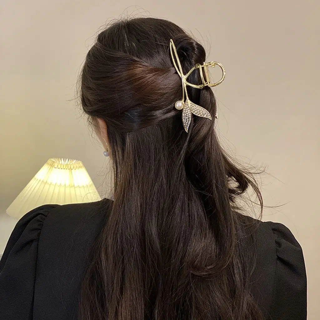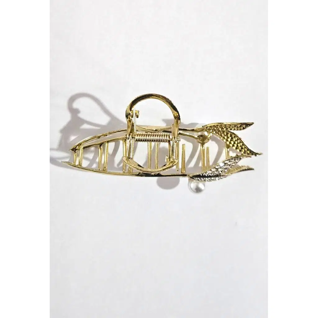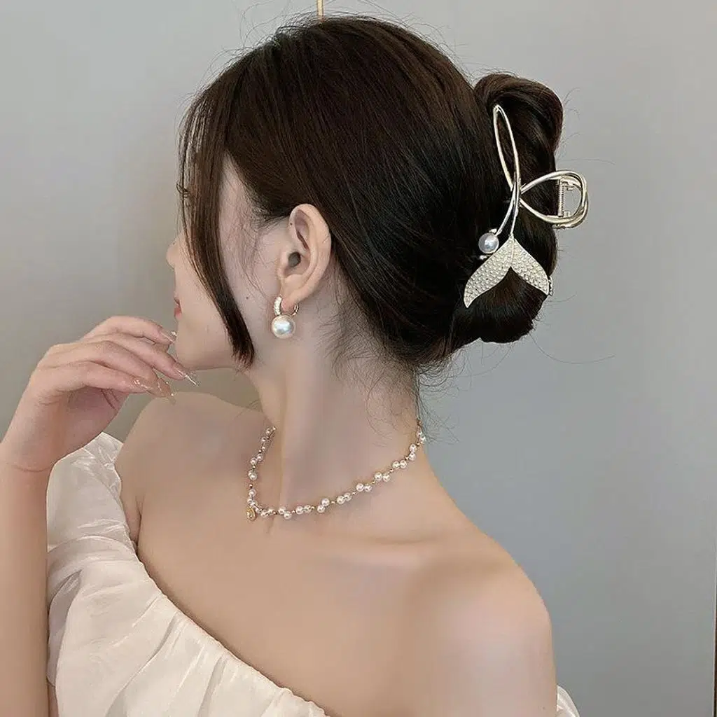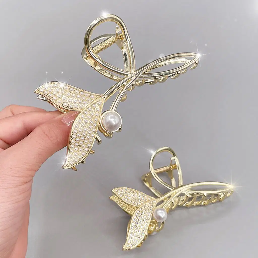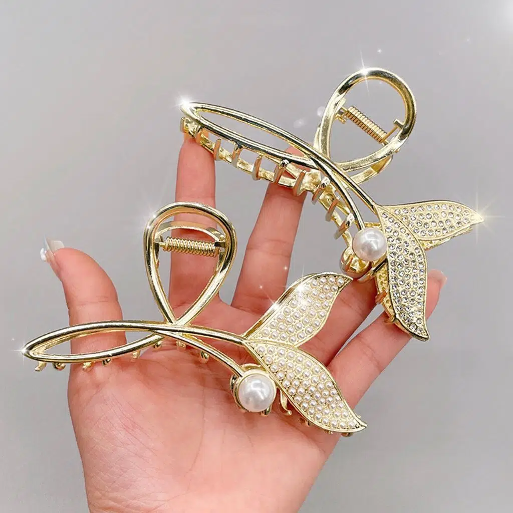 Taşlı incili balık kuyruğu model metal mandal saç tokası, zarif tasarımıyla saçlarınıza göz alıcı bir şıklık kazandırır.