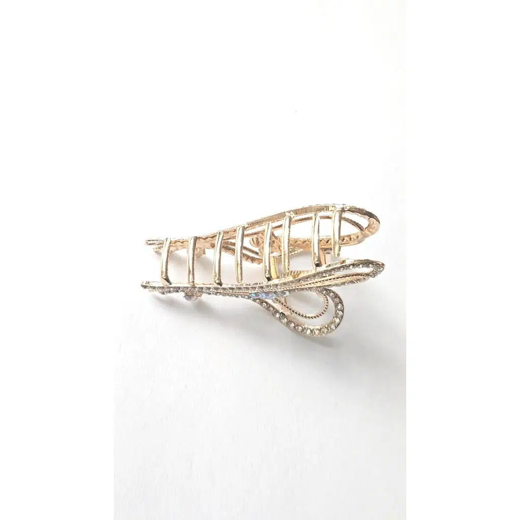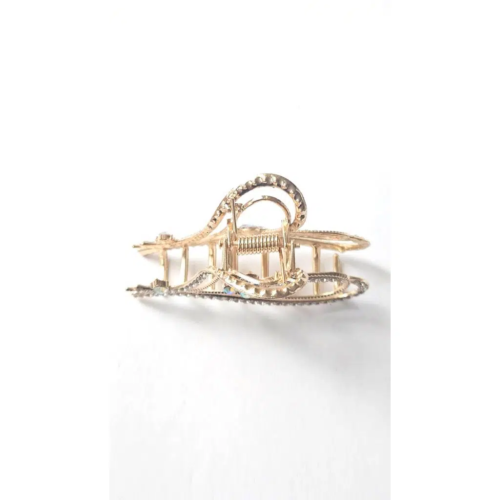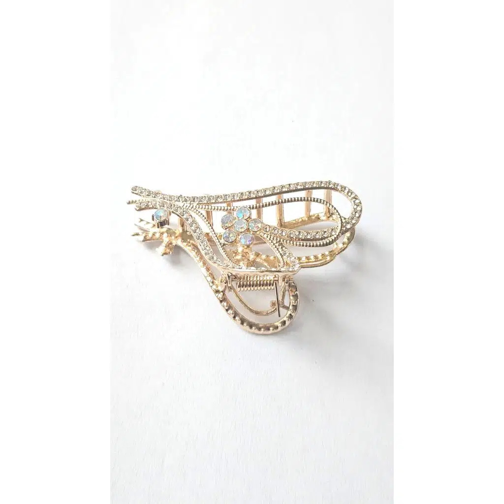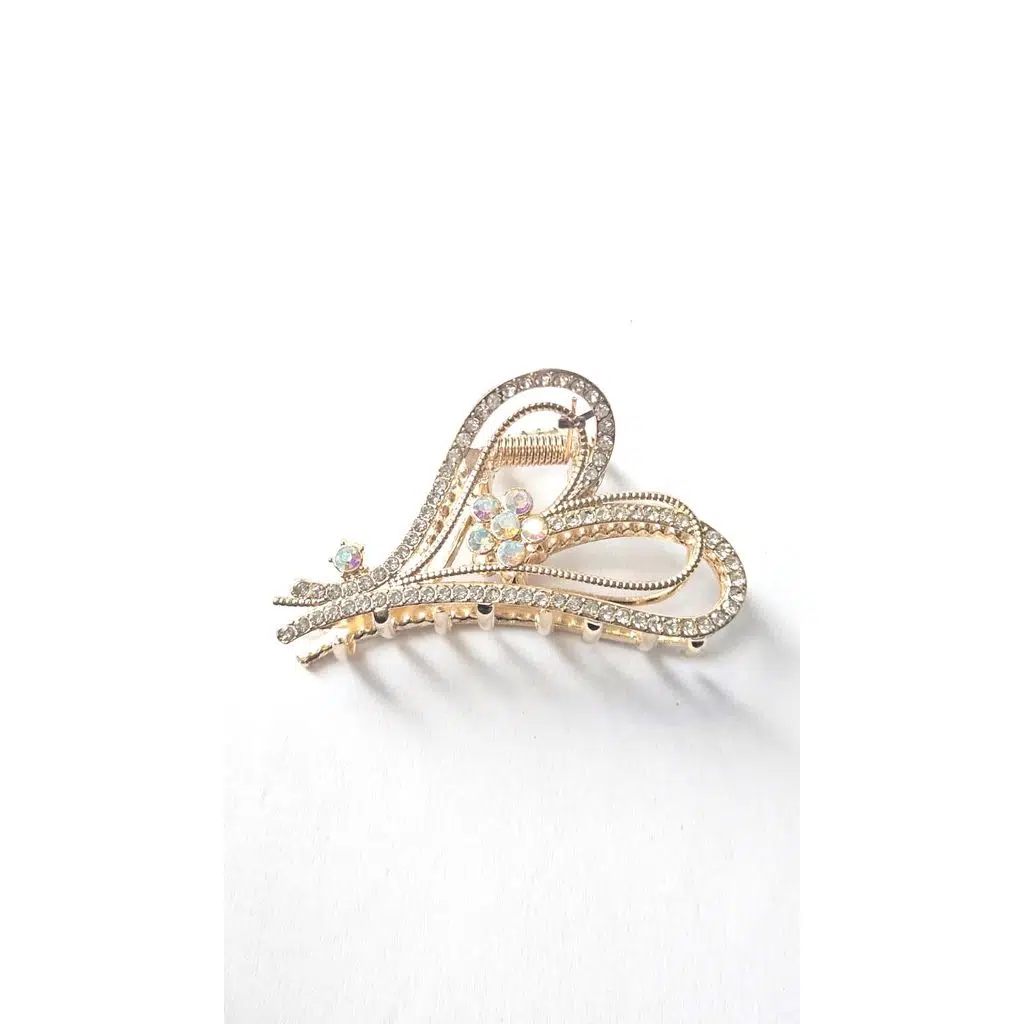 Taşlı Kalp ve Çiçek Tasarım Altın Renk 7 cm Metal Mandal Saç Tokası