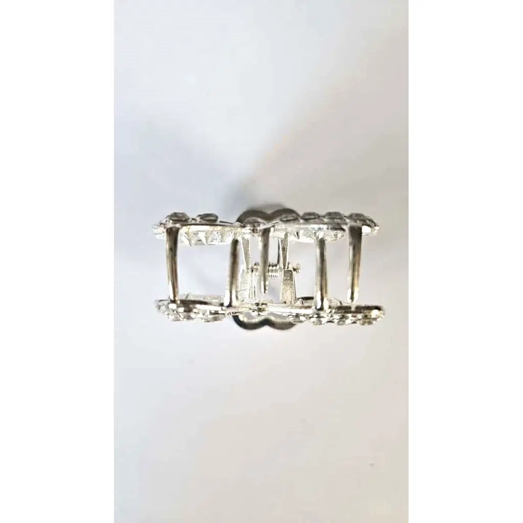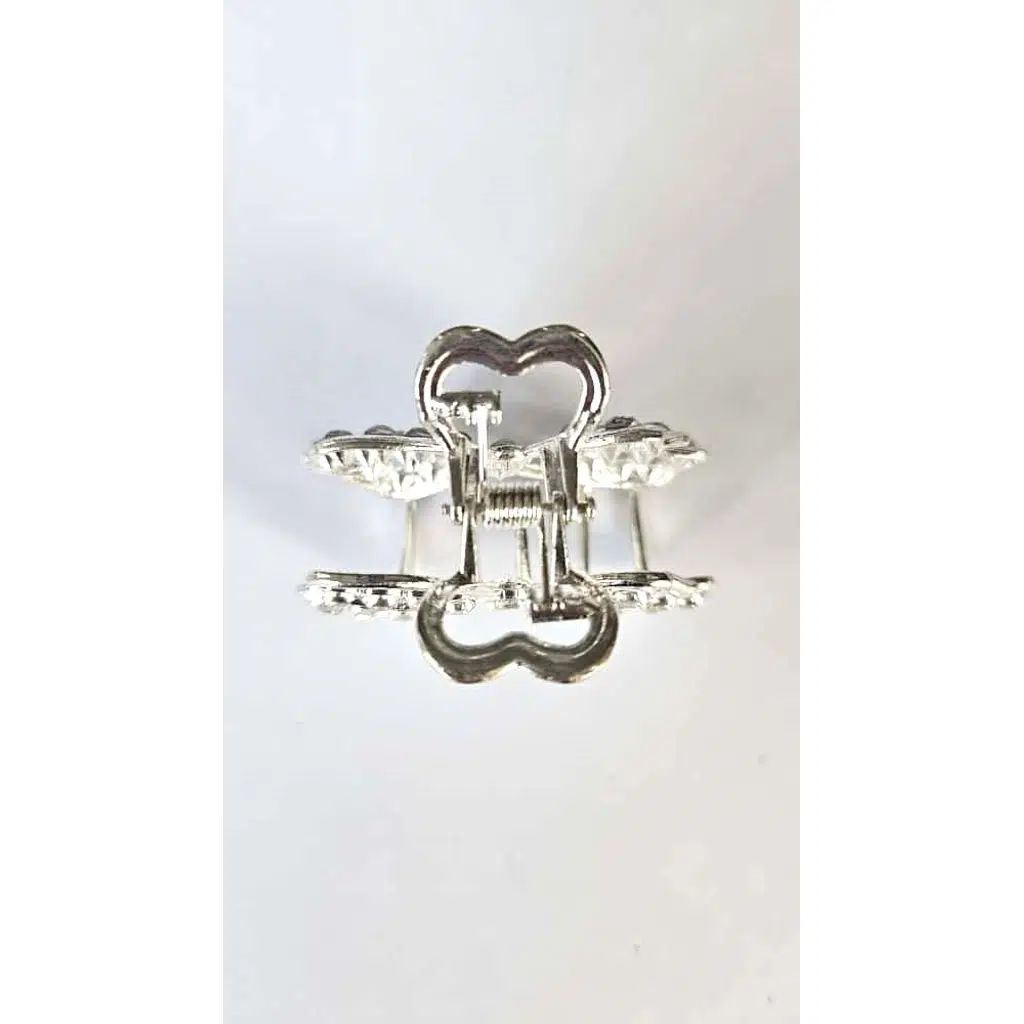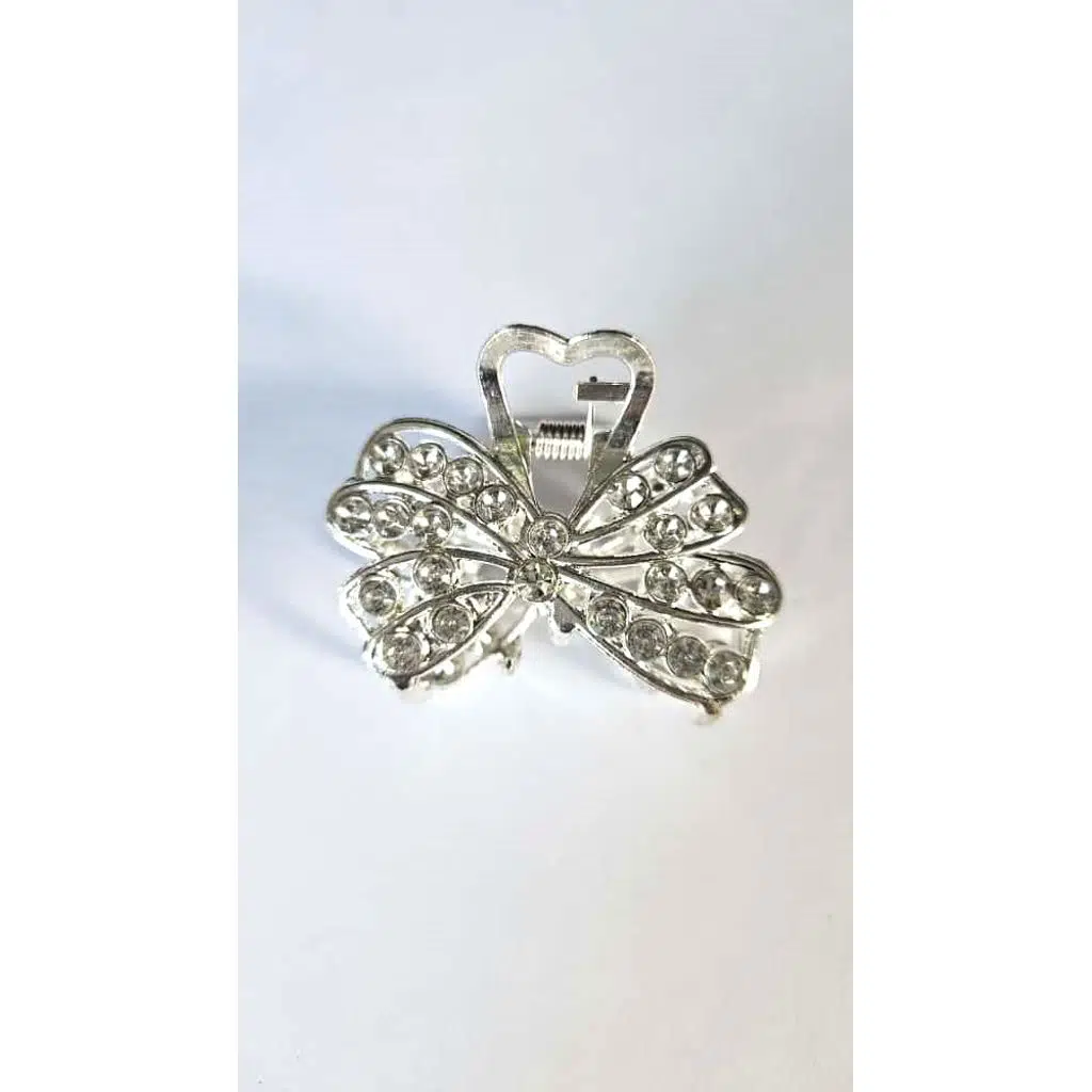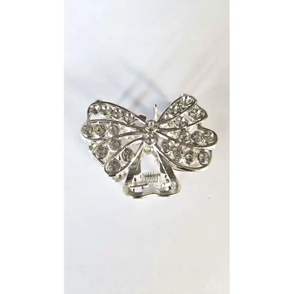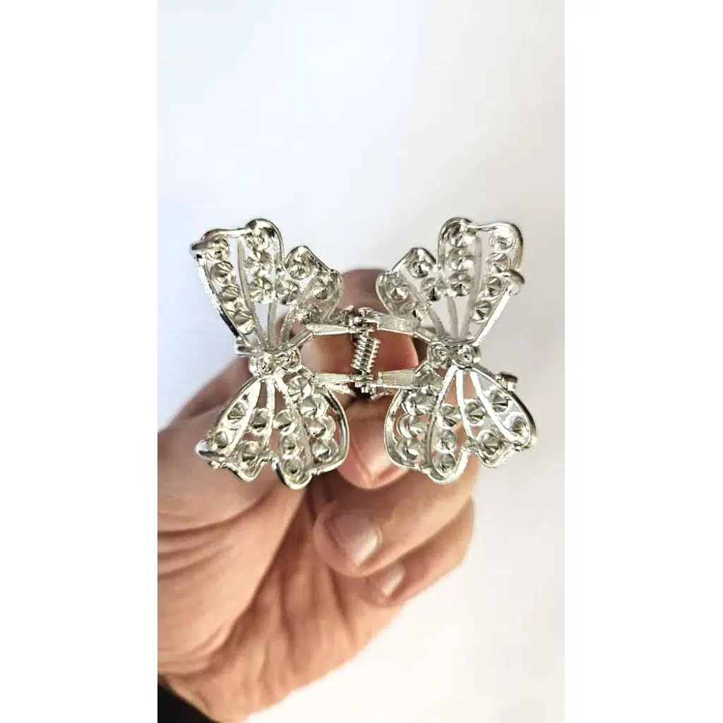 Taşlı Kelebek Desenli Gümüş Renk 4,5 cm Metal Saç Tokası – Işıltılı ve Zarif Tasarım