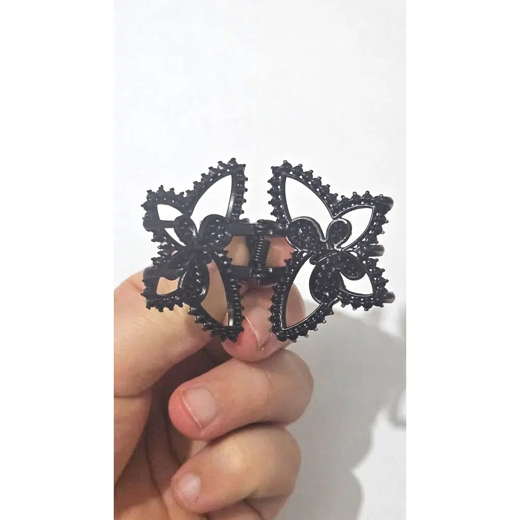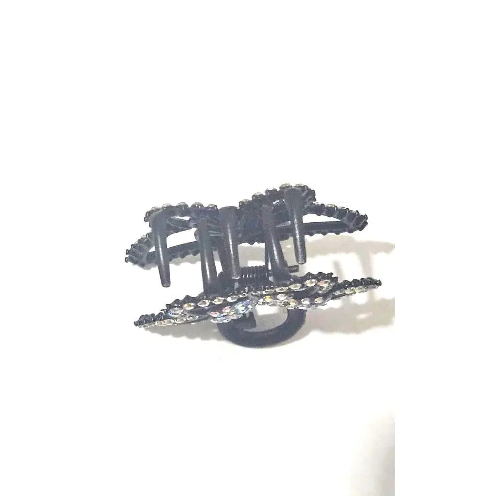 Taşlı Kelebek Tasarım Siyah Renk Metal Mandal Saç Tokası 4 cm