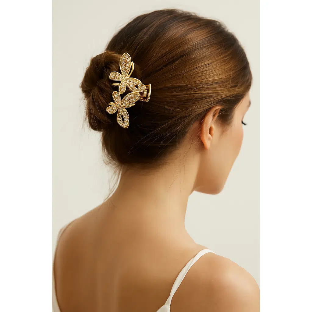 Saçları sıkıca kavrayan güçlü mandal mekanizmasıyla konforlu ve dayanıklı kullanım sunar. Kelebek detaylı tasarımıyla feminen, zarif ve modern bir stil yaratır.