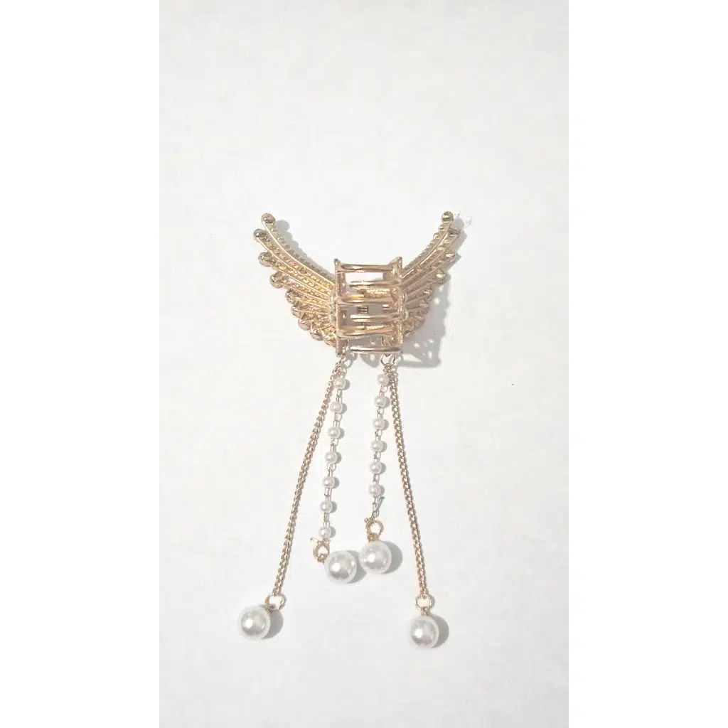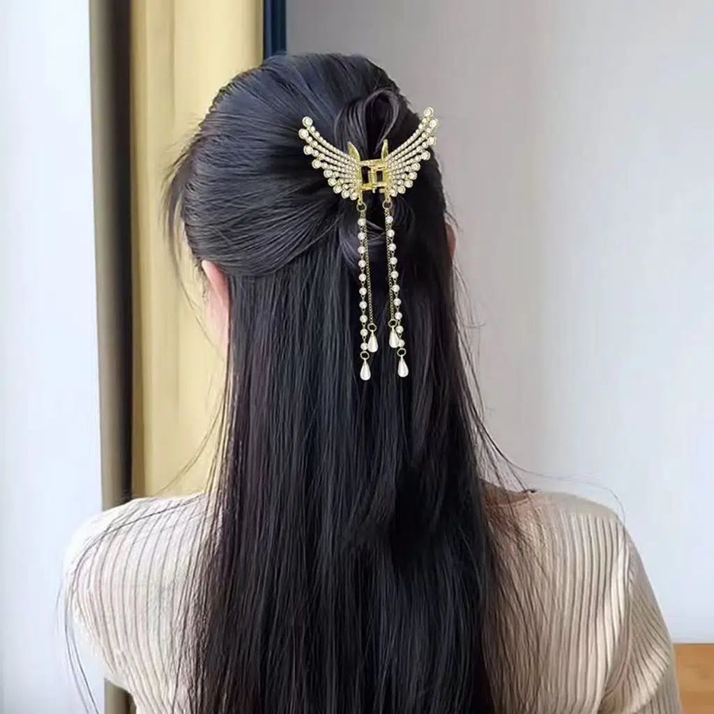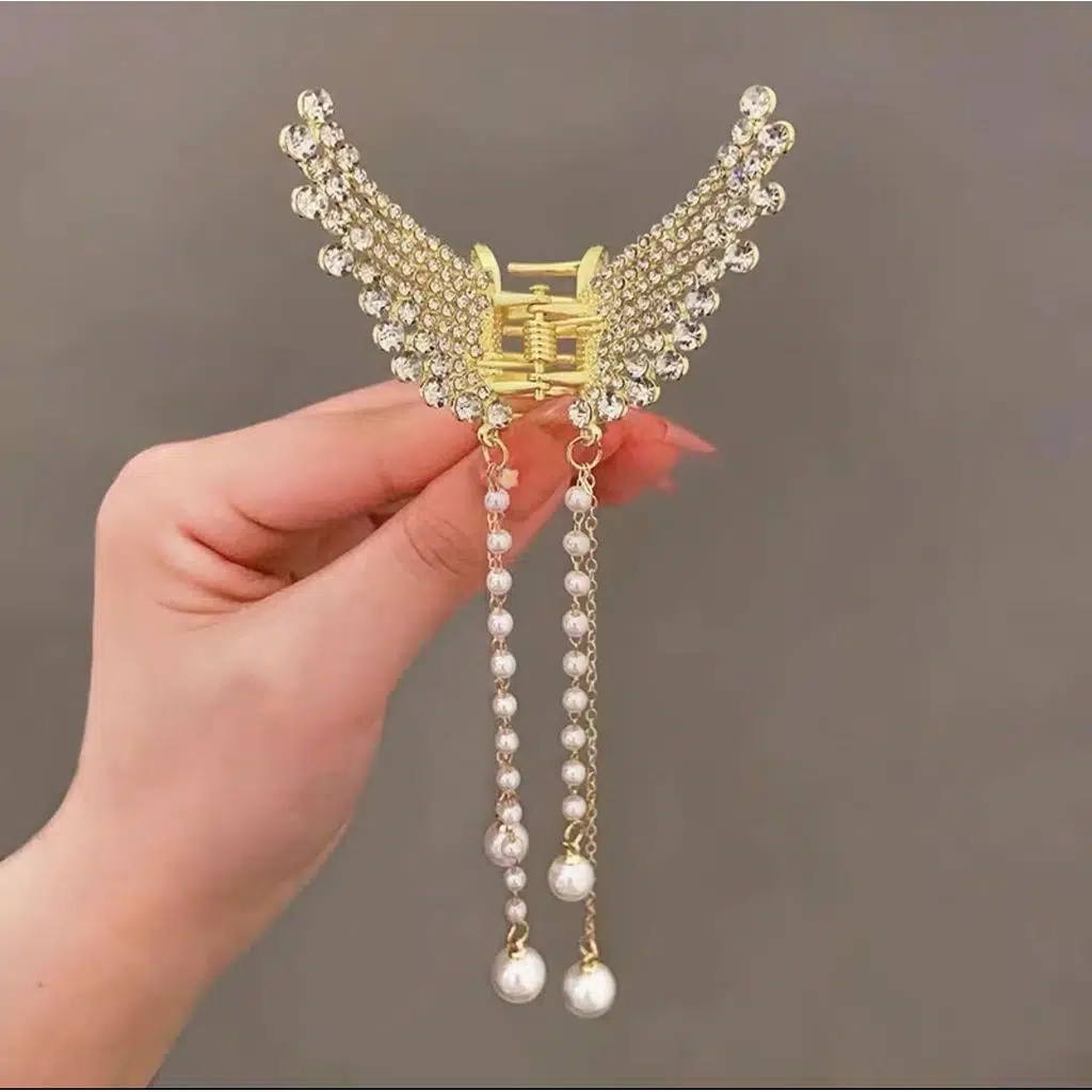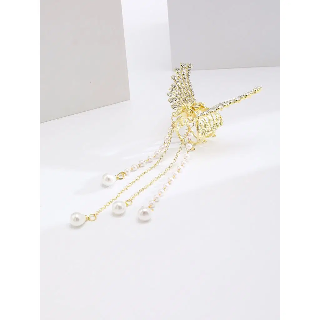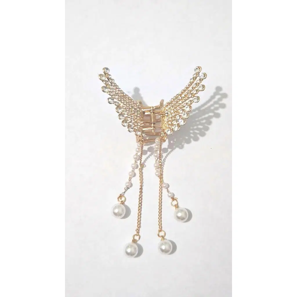 Taşlı ve İncili Kelebek Tasarım Mandal Saç Tokası 6 cm