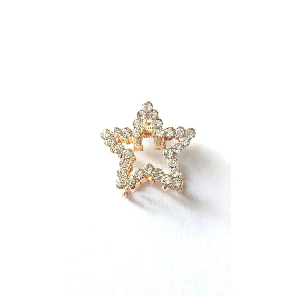 Taşlı Yıldız Tasarım Altın Renk 2,5 cm Metal Mandal Saç Tokası