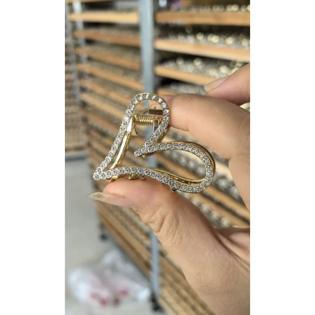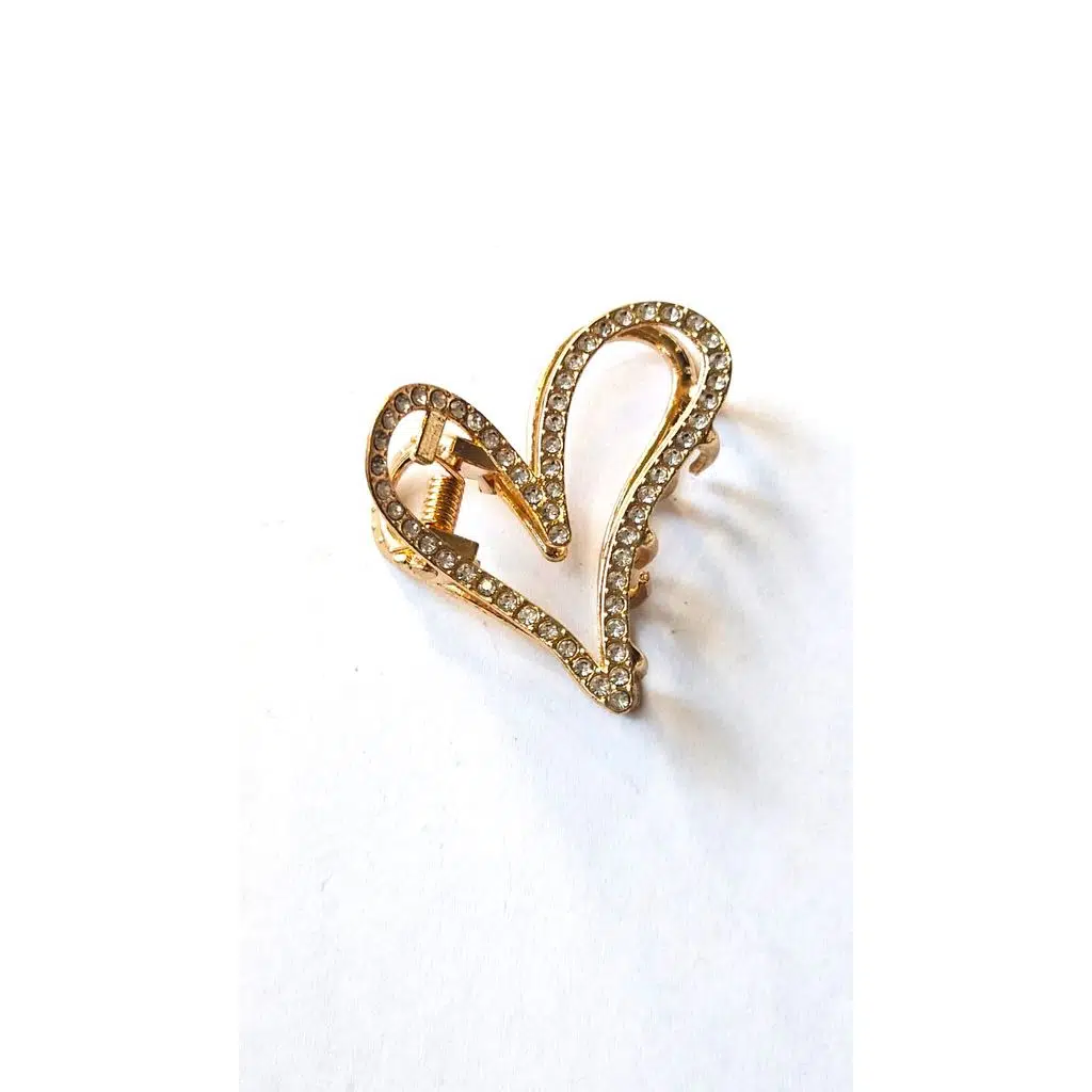 Taşlı Zarif Kalp Tasarımlı Metal Mandal Toka 5 cm