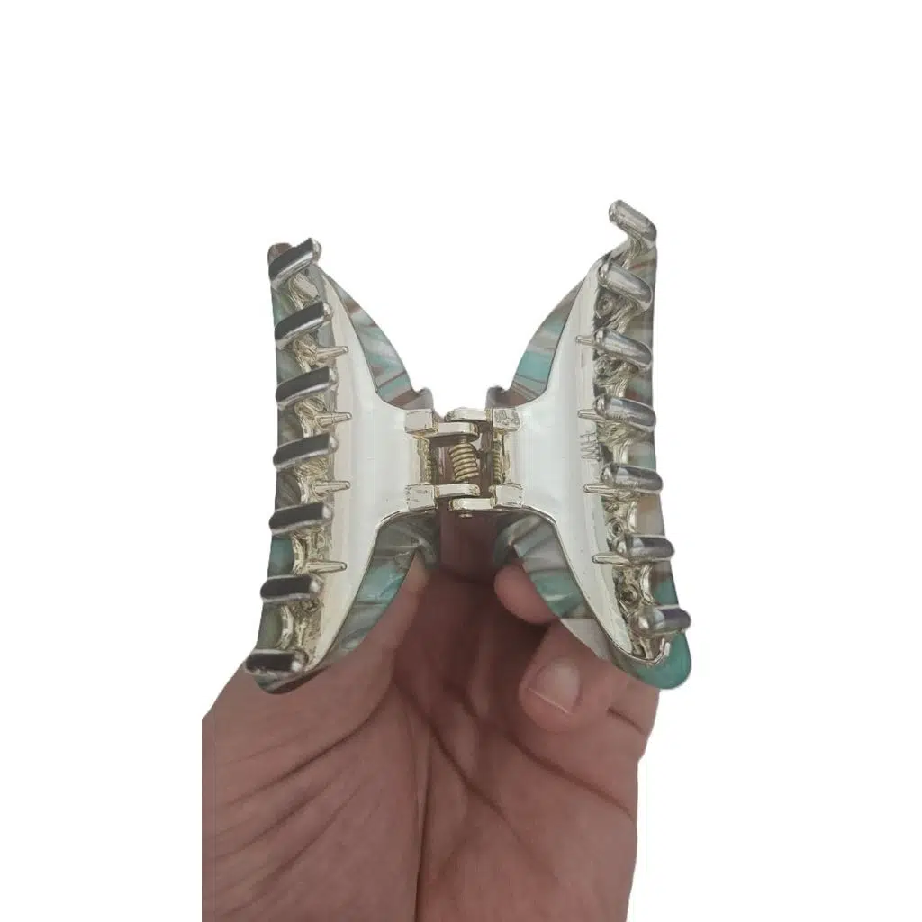 Yeşil Mermer Desenli 7 cm Kemik Mandal Toka - Şık ve Dayanıklı