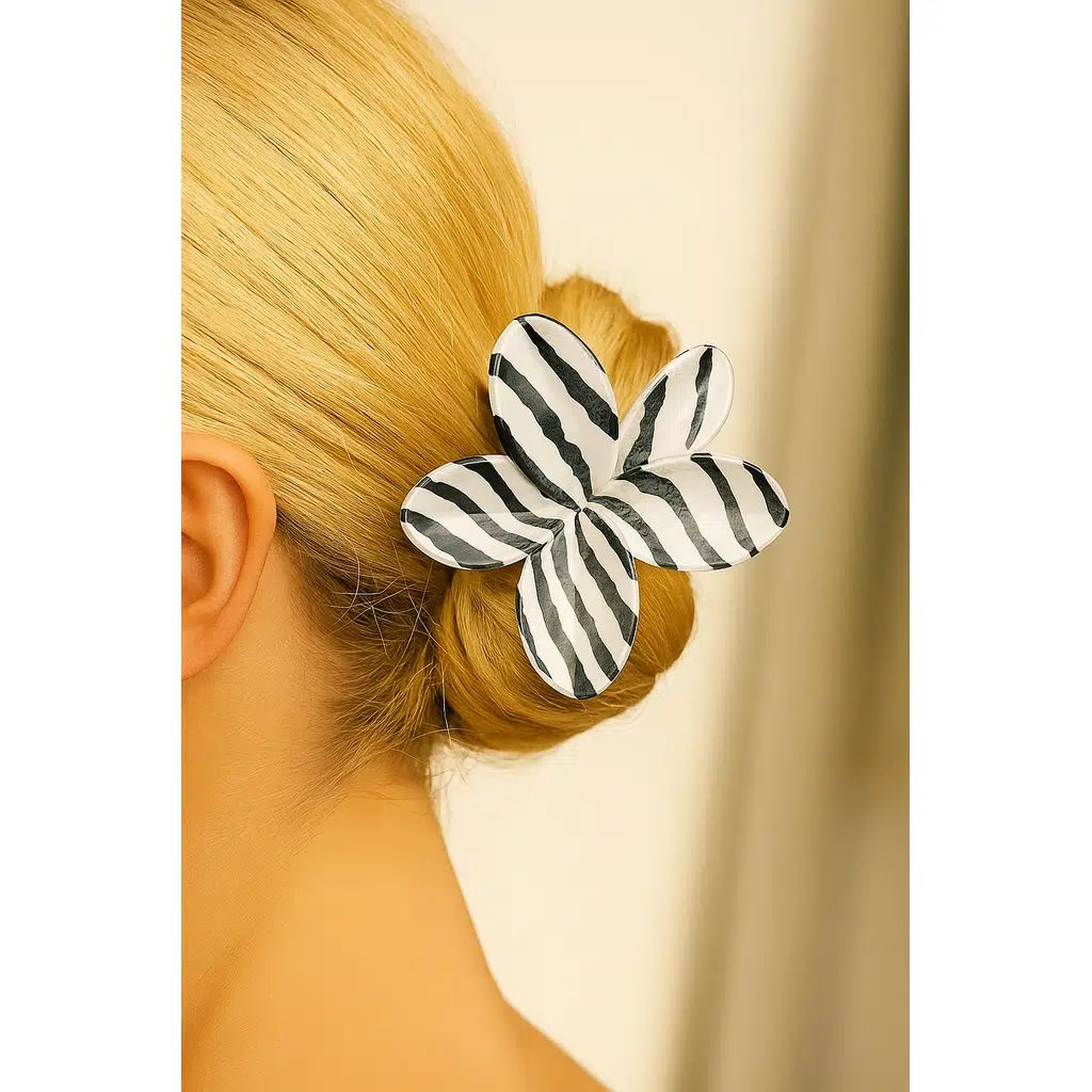 Zebra Degrade Renk Lotus Mandal Saç Tokası 8 cm – Şık ve Dayanıklı